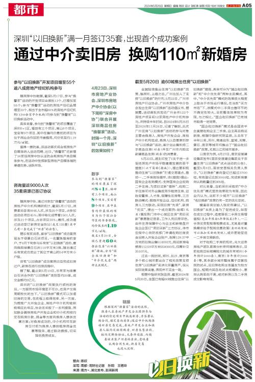 4月23日,深圳市房地产业协会、深圳市房地产中介协会(以下简称“深房中协”)联合开展深圳商品住房“换馨家”活动。时隔一个月,深圳“以旧换新”的效果如何?