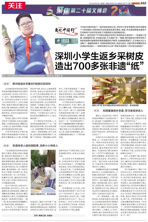 深圳小学生返乡采树皮 造出700多张非遗“纸”