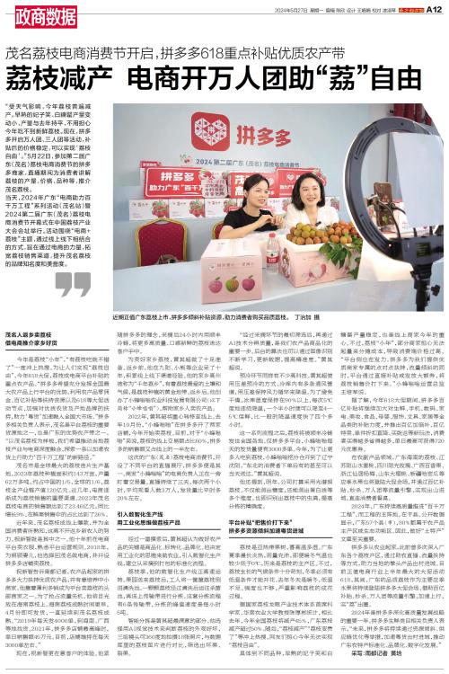 5月22日,参加第二届广东(茂名)荔枝电商消费节的拼多多商家,直播期间为消费者讲解荔枝的产量、价格、品种等,推介茂名荔枝。