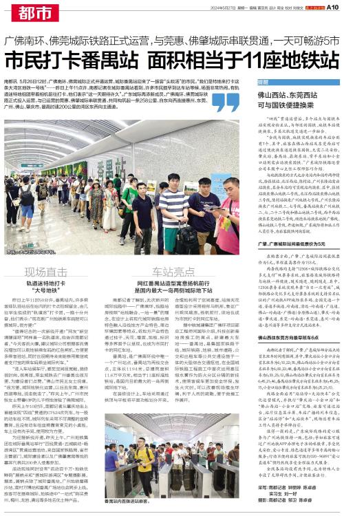 5月26日12时,广佛南环、佛莞城际正式开通运营,城际番禺站迎来了一拨尝“头啖汤”的市民。