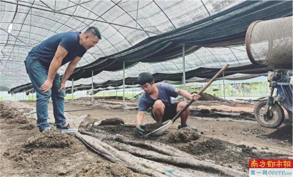 在惠阳良井镇桥背村的广袤水田中,一个别具一格的蚯蚓养殖基地引人注目。多个大棚紧密相连,数十条“田垄”上覆盖着遮光膜,膜下则是经过精心调配的牛粪和豆渣混合物,为蚯蚓提供了一个理想的生长环境。在这里,蚯蚓忙碌地在牛粪和豆渣之间穿梭,通过吞食、消化、排泄等过程,形成了一条独特的生态循环链。