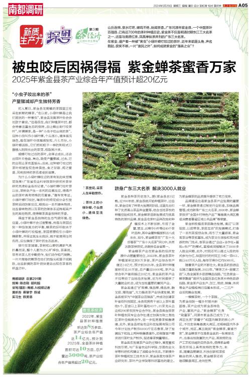 在紫金,盛产着一种被“害虫”小绿叶蝉叮咬过的茶叶,近年来崭露头角,声名鹊起,获奖不断。一片“富民之叶”,如何成就紫金的“强县之业”?