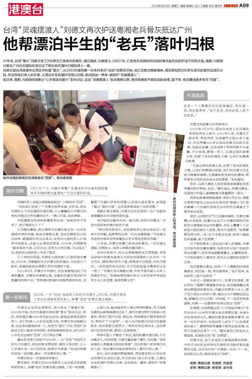 21年间,台湾“里长”刘德文背了200多位亡故老兵的骨灰,渡过海峡,归根故土。