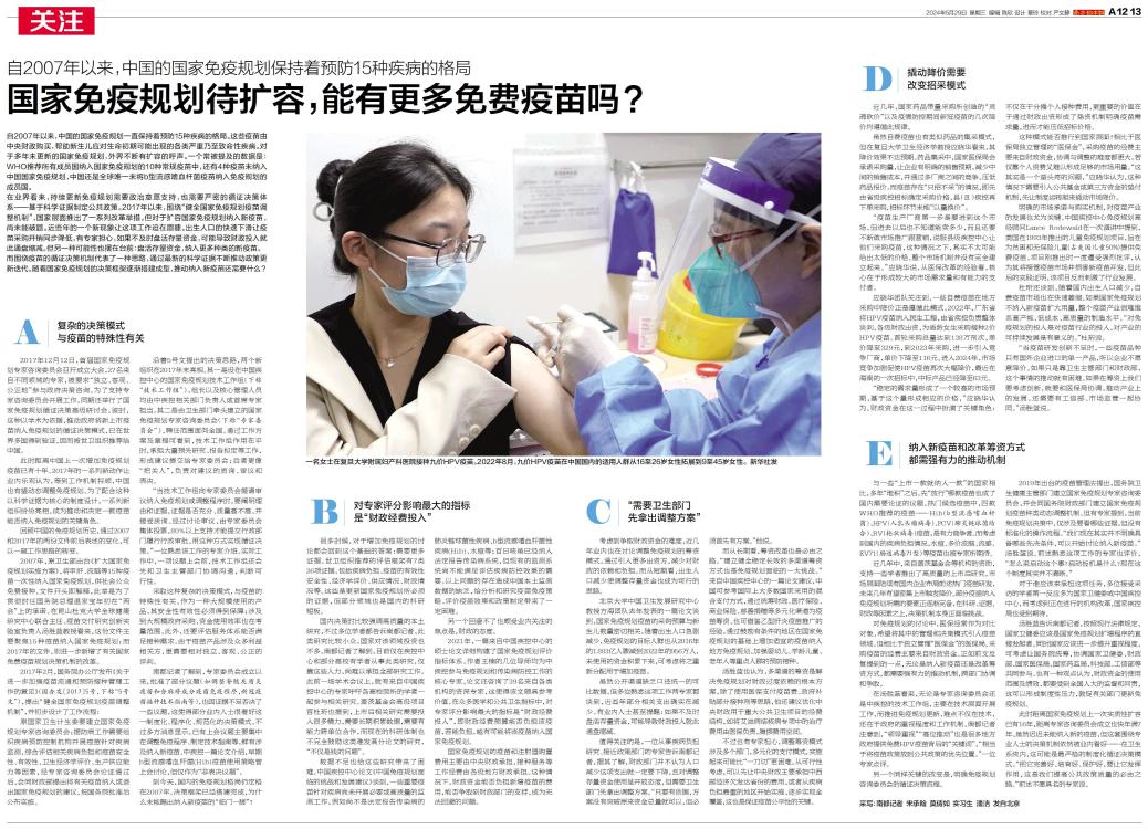 国家免疫规划待扩容,能有更多免费疫苗吗?