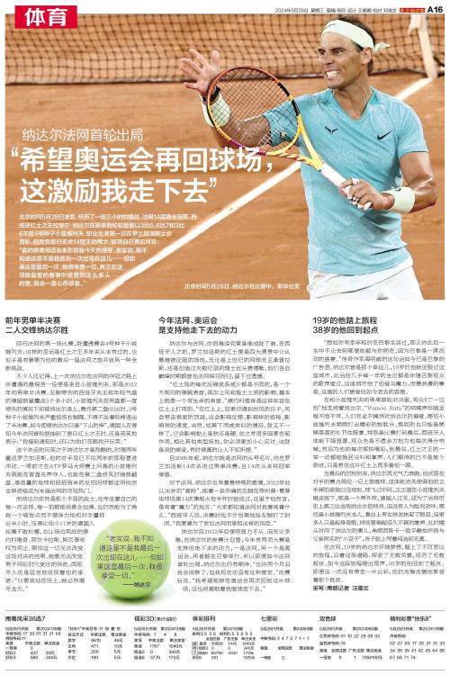北京时间5月28日凌晨,经历了一场三小时的鏖战,法网14届赛会冠军、西班牙红土之王拉斐尔·纳达尔在男单首轮较量里以3比6、6比7和3比6不敌4号种子小兹维列夫,职业生涯第一次在罗兰加洛斯止步首轮。