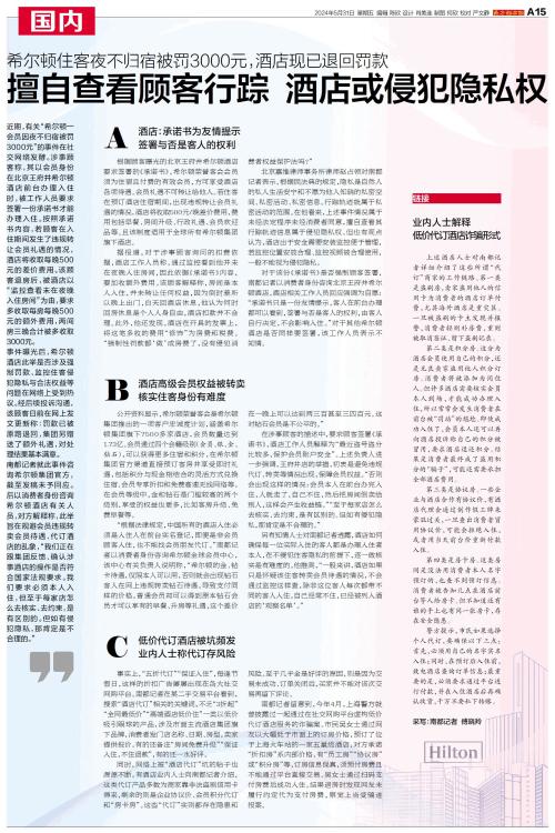 近期,有关“希尔顿一会员因夜不归宿被罚3000元”的事件在社交网络发酵。