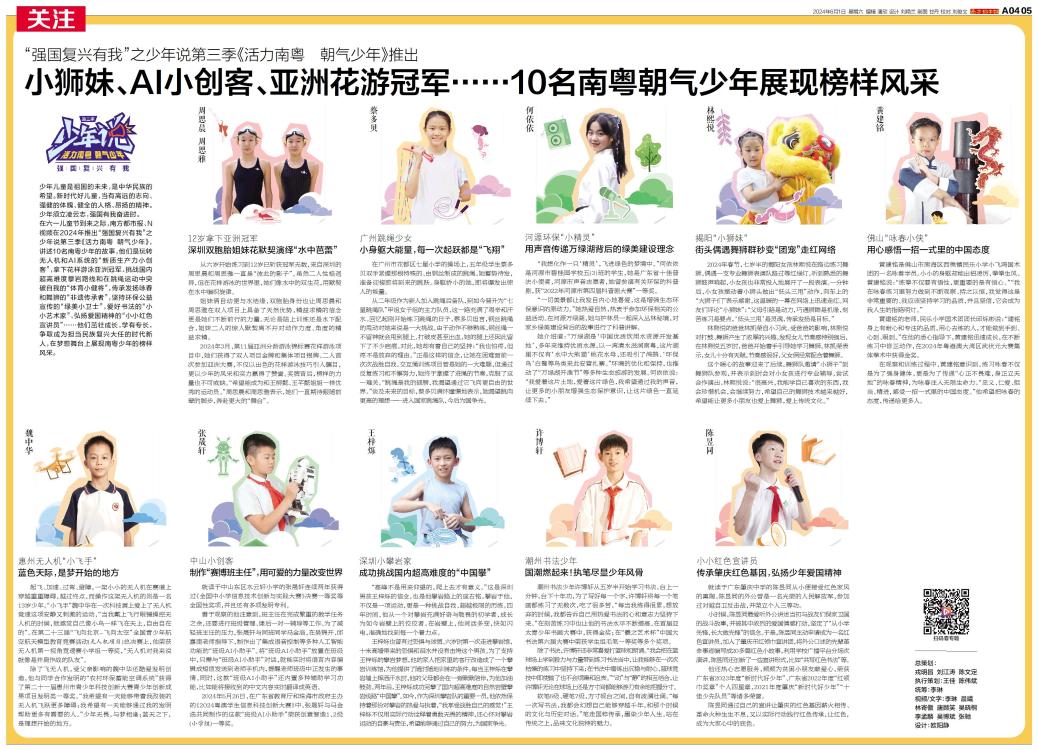 小狮妹、AI小创客、亚洲花游冠军……10名南粤朝气少年展现榜样风采