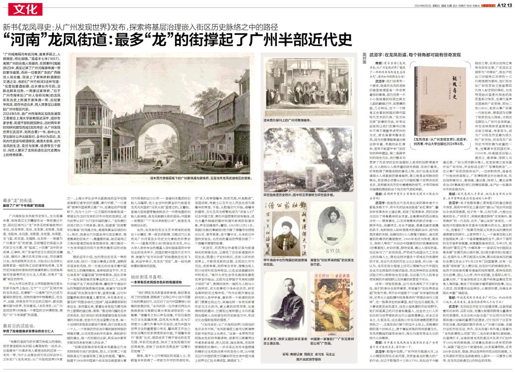2024年5月,历时两年多时间研究撰写而成《龙凤寻史:从广州发现世界》(武洹宇、刘芮合著)一书,由中山大学出版社公开出版发行。