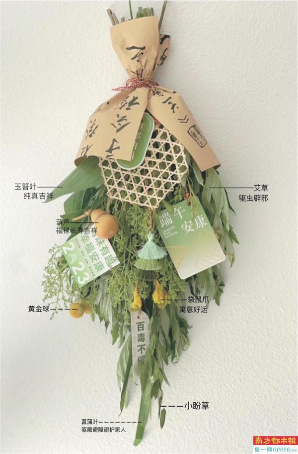 年轻人作为新时代的文化传承者,正用自己的方式找到传统文化最鲜活的“打开”方式。新式艾草门挂已然成为花艺界的“新晋网红”。它们不再仅仅是简单的艾草束,而是不断往创意元素上叠buff,如菖蒲、女贞叶、小米果等叶材,再加上别致的香囊和个性化卡片,这种混搭风让不少年轻人种草。