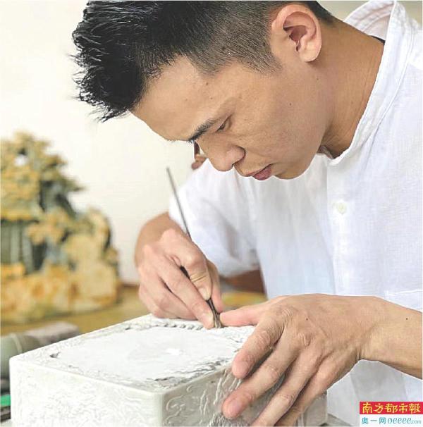 随着文化出海成势,端砚成为了不少外国友人来广东旅游的必备“广货”。此次文博会亮相的“白端”,质如玉、白胜雪,常引来外国顾客好奇驻足。近日,南都记者专访了这方“白端”背后的“手艺人”,高级技师、中级工艺美术师梁振华,听他讲述了千雕万琢成精品背后的故事。