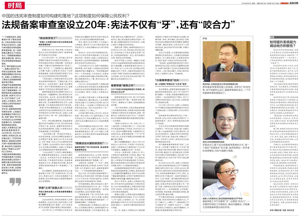 法规备案审查室设立20年:宪法不仅有“牙”,还有“咬合力”