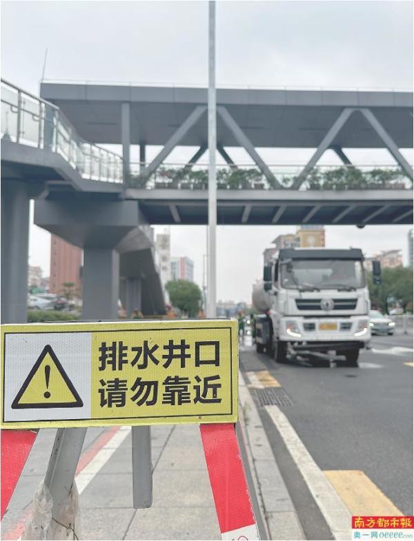 排水井口放置的警示牌。