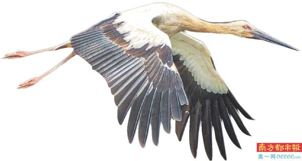 海珠湿地发现的国家一级重点保护动物东方白鹳。 俞俊棋 摄