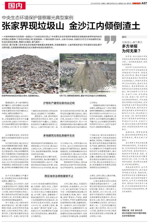 6月6日,第三轮第二批中央生态环境保护督察曝光典型案例。在督察通报中,七省市都或多或少存在建筑垃圾处置不当等问题。垃圾随意倾倒更成为此次督察中的信访举报热点。