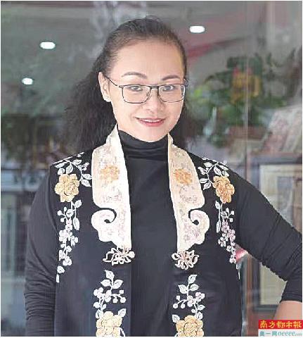 在非遗日的广州非遗宣传展示主会场,唐志茹展示了小朋友的钉金绣裙褂。她说,钉金绣裙褂定制挺受欢迎,现在最大的困难是缺传人。儿童款的钉金绣裙褂很多人订。但现在传统手艺回本时间太长了,愿意入行的人不多。一套小男生的钉金绣裙褂20天可以绣完,但小女生款一套更花功夫,需要40天左右,很花功夫。
