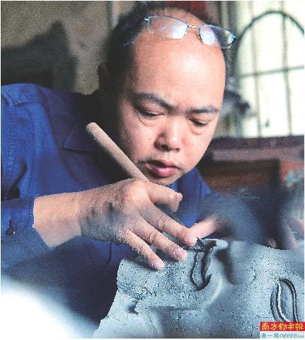 何世良的工作室就位于“沙湾非遗古镇”,他认为沙湾是一个很好展示非遗的平台。他还致力于非遗进校园推广工作。对于砖雕的创新发展,何世良表示,首先一定要继承优秀的东西,然后结合当代的审美、要求做新的作品。比如在传统的基础上,设计一些有现代题材、现代视觉效果的作品。同时,我一直都在推广我们广府的一些传统的建筑,广府文化除了砖雕以外,我也希望能够推动木作发展。广州传统建筑的所有元素,怎样跟现当代建筑有机融合,这一块也是我以后想推动的一个方向。