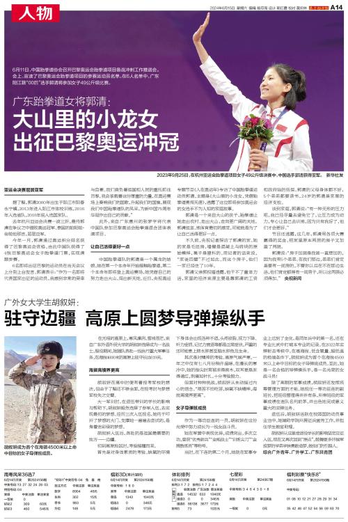 6月11日,中国跆拳道协会召开巴黎奥运会跆拳道项目备战冲刺工作推进会。会上,宣读了巴黎奥运会跆拳道项目的参赛运动员名单。在6人名单中,广东阳江籍“00后”选手郭清将参加女子49公斤级比赛。