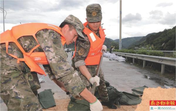 6月17日14时17分,武警梅州支队24名兵力在政治工作处主任温华楼带领下,抵达梅州市大埔县高陂镇展开抢险救援行动,紧急加固韩江支流合溪水下段堤坝。截至17日20时,支队官兵联合驻地群众装填、搬运沙袋6000余袋、加固堤坝1150余米,成功封堵3处管涌点。