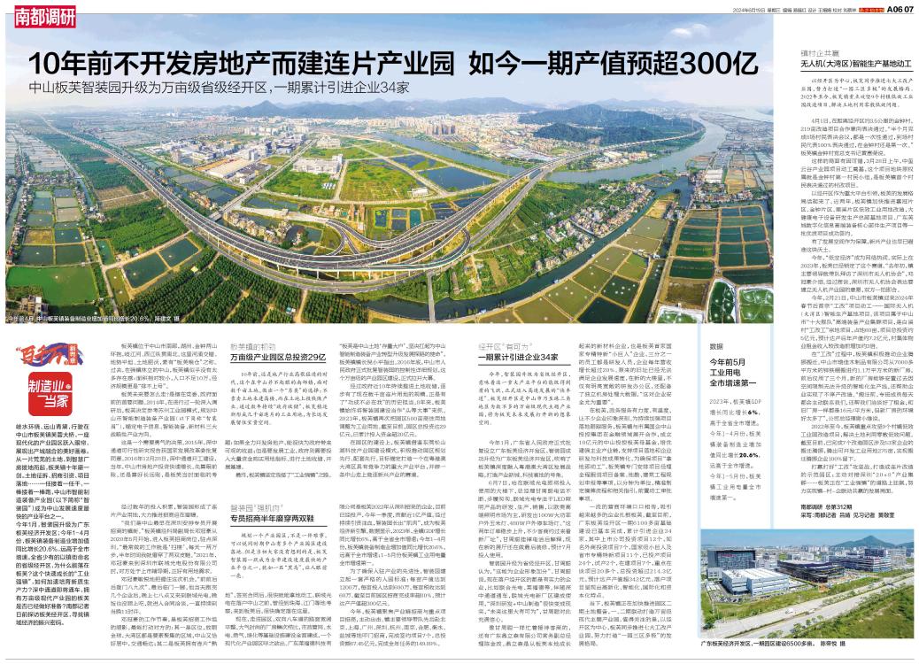 10年前不开发房地产而建连片产业园 如今一期产值预超300亿