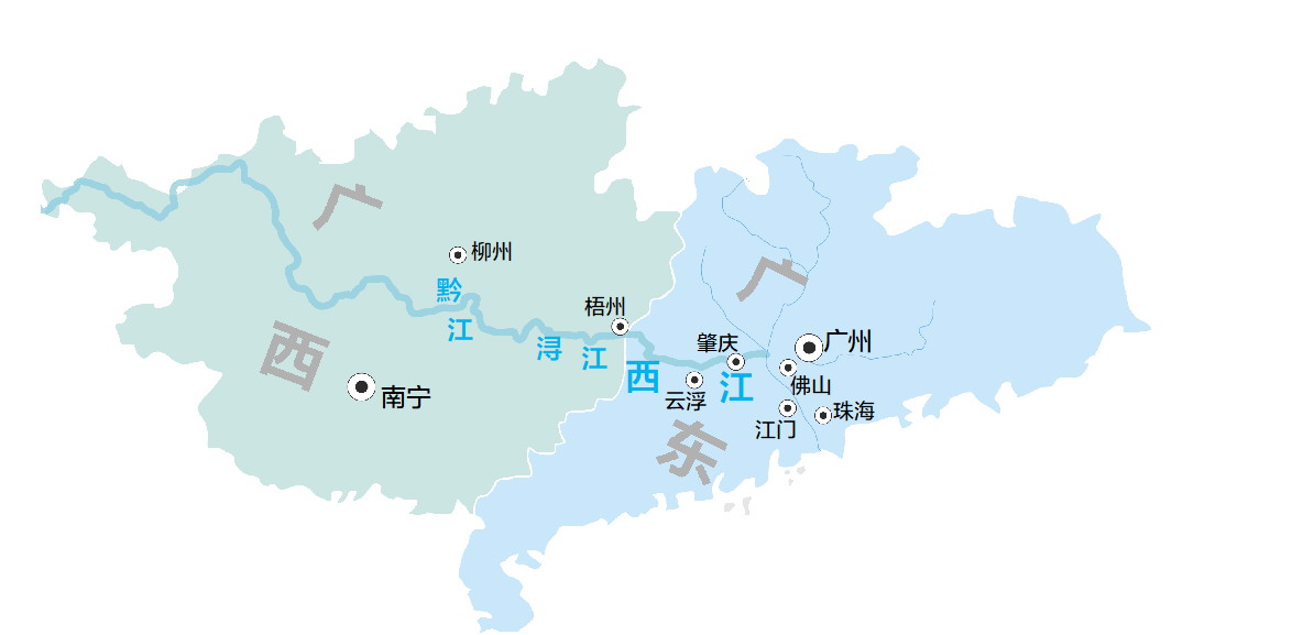 注释西江,珠江流域的主流。发源于云南,流经贵州、广西,流经广东肇庆、云浮等,至佛山与北江相通并进入珠江三角洲网河区,干流在珠海注入南海。