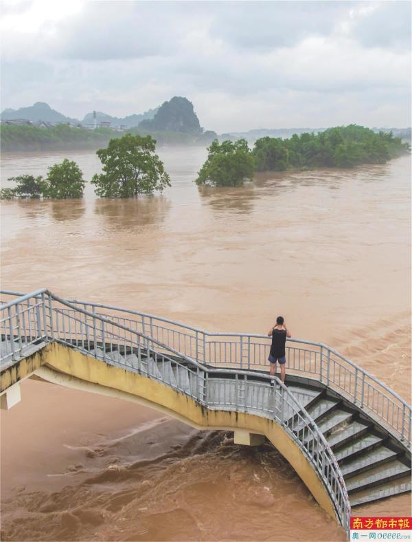 6月18日,受强降雨影响,广西桂林漓江水位暴涨,漓江属珠江流域西江水系。昨日桂林遭遇1998年以来最大洪水。 IC供图