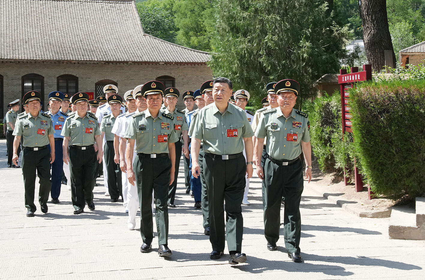 17日下午,习近平带领军委一班人和各部门各单位主要负责同志瞻仰王家坪革命旧址。 新华社发
