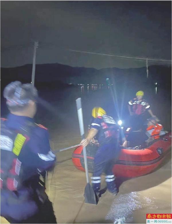 “当时雨已经停了,但很多地方仍被淹,越野车都无法通行,原本三四分钟的路程,我们绕了将近半小时才到达能下水的地方。”副队长毕华桃带领着队员在当地向导的指引下,驾驶两艘橡皮艇在下南村寻找被困群众。