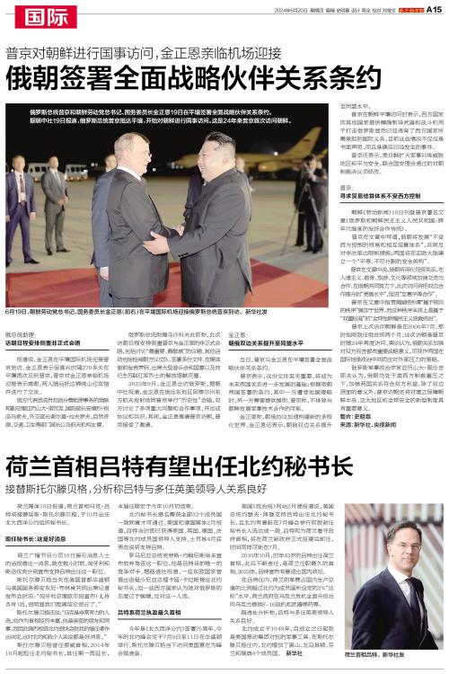 俄罗斯总统普京和朝鲜劳动党总书记、国务委员长金正恩19日在平壤签署全面战略伙伴关系条约。