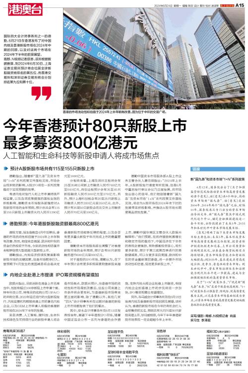 国际四大会计师事务所之一的德勤,6月21日在香港发布了对中国内地及香港新股市场在2024年中期的回顾,以及对这两个市场在2024年下半年的前景展望。
