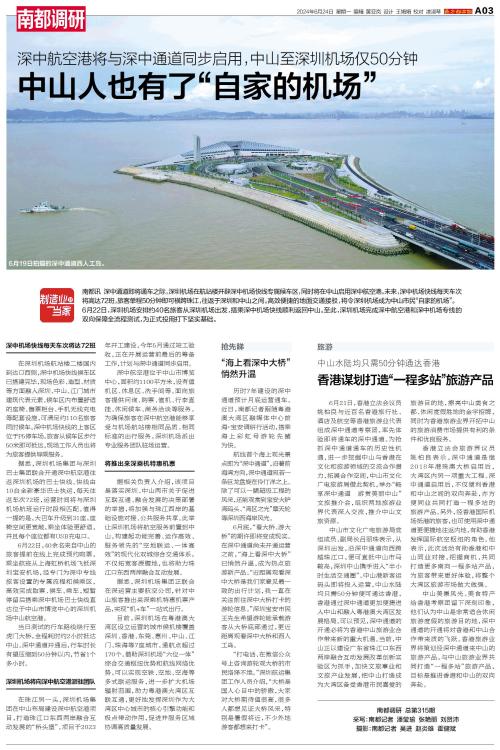 深中通道即将通车之际,深圳机场在航站楼开辟深中机场快线专属候车区,同时将在中山启用深中航空港。