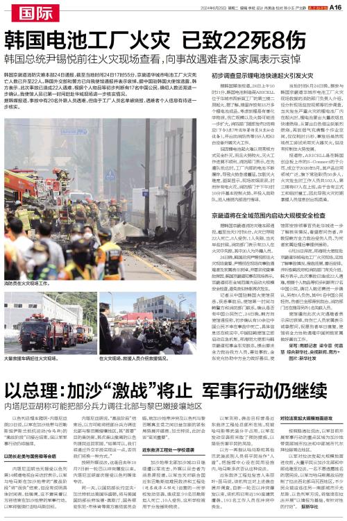 韩国京畿道消防灾难本部24日通报,截至当地时间24日17时55分,京畿道华城市电池工厂火灾死亡人数已升至22人。