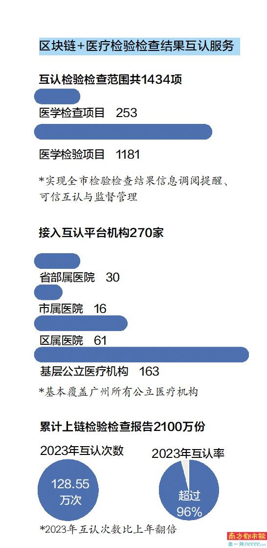 广州市卫生健康委推动“区块链+检验检查结果互认服务”,打造全市检验检查结果互认平台,绘就民生温暖底色。数据显示,截至2023年10月平台记录互认245万次,经估算为群众节省检验检查费5.08亿元。