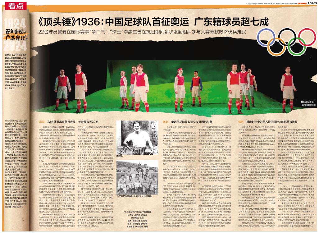 《顶头锤》1936:中国足球队首征奥运 广东籍球员超七成