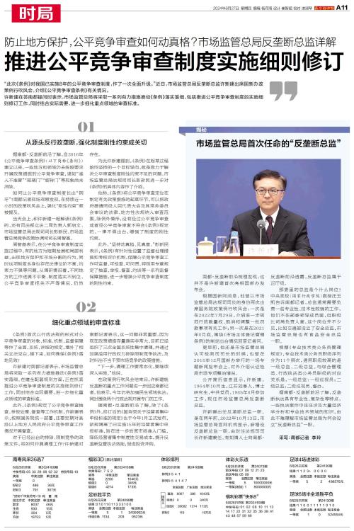 近日,市场监管总局反垄断总监许新建出席国新办政策例行吹风会,介绍《公平竞争审查条例》有关情况。