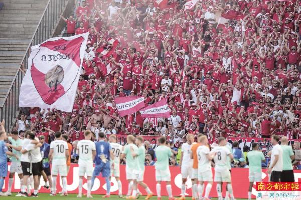 6月25日,2024欧洲足球锦标赛D组进行第三轮比赛,奥地利队3比2战胜荷兰队。奥地利队球迷在赛后庆祝。