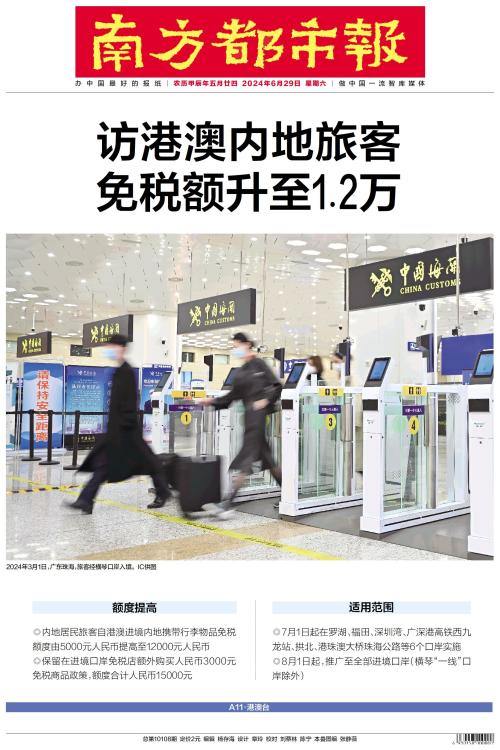7月1日起,内地居民旅客自香港或澳门进境内地携带行李物品的免税额度将由人民币5000元提高至12000元。