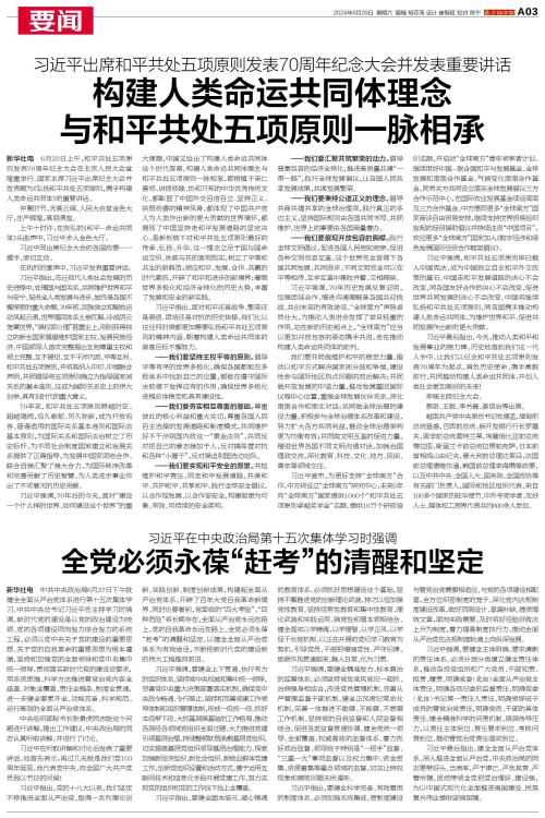 6月28日上午,和平共处五项原则发表70周年纪念大会在北京人民大会堂隆重举行。