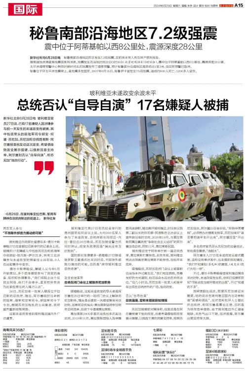 秘鲁南部沿海地区昨日发生7.2级地震,目前尚未有人员及财产损失报告。