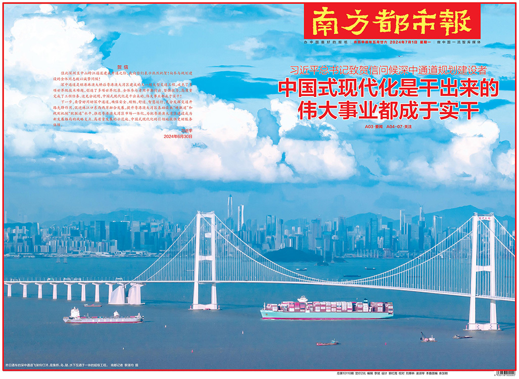 值此深圳至中山跨江通道建成开通之际,我向你们表示热烈祝贺!向参与规划建设的全体同志致以诚挚问候!