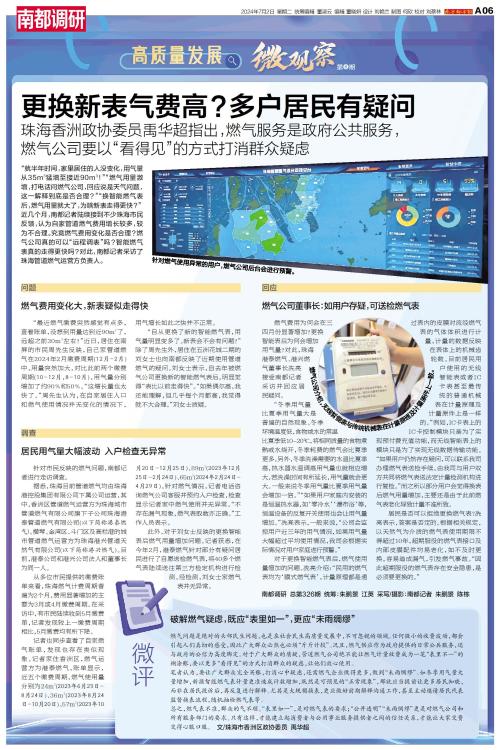 近几个月,南都记者陆续接到不少珠海市民反馈,认为自家管道燃气费用增长较多,较为不合理。