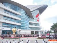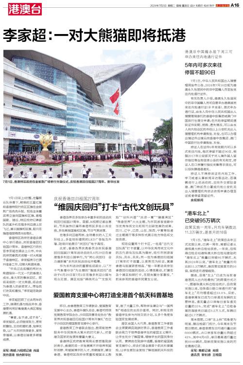 7月1日早上8时整,在警察乐队伴奏下,鲜艳的五星红旗和香港特别行政区区旗在金紫荆广场冉冉升起。