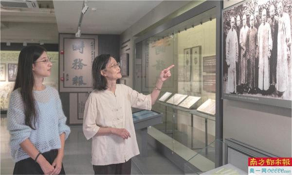 北大中文系教授夏晓虹(右)与广财讲师朱立芳参观位于江门新会的梁启超故居纪念馆。