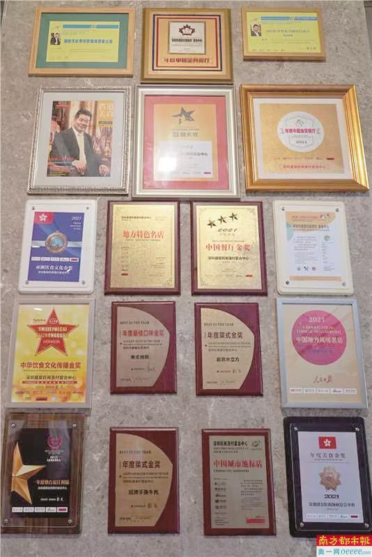 梁永申家族粤菜品牌获得的奖项。
