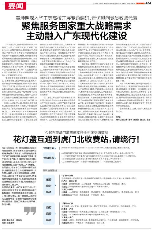 7月4日6时起,虎门港高速将实行全封闭交通管制。
