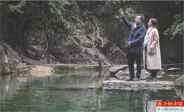 李若晴(左)罗寒蕾在肇庆鼎湖山飞水潭探访,高剑父曾多次到鼎湖山写生。