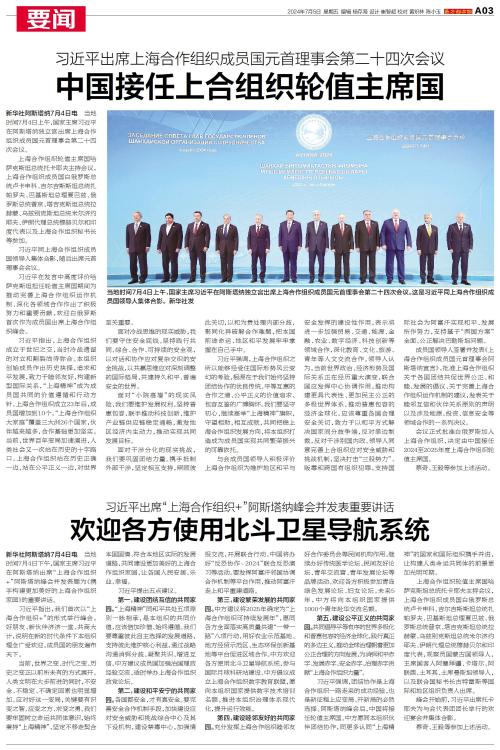 当地时间7月4日上午,国家主席习近平在阿斯塔纳独立宫出席上海合作组织成员国元首理事会第二十四次会议。