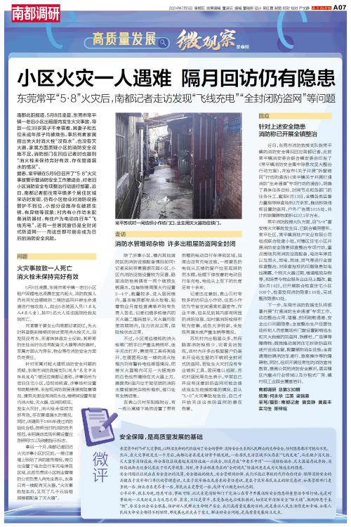 南都此前报道,5月8日凌晨,东莞市常平镇一老旧小区出租屋内发生火灾事故,导致一位39岁男子不幸罹难,其妻子和五位未成年孩子均被烧伤。