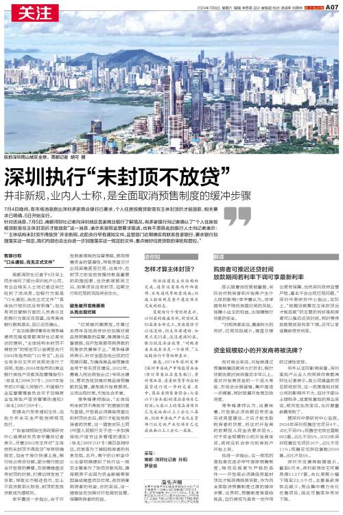 7月4日晚间,有市场消息指出深圳多家商业银行已要求,个人住房按揭贷款需在主体封顶后才能放款,相关要求已明确,5日开始实行。