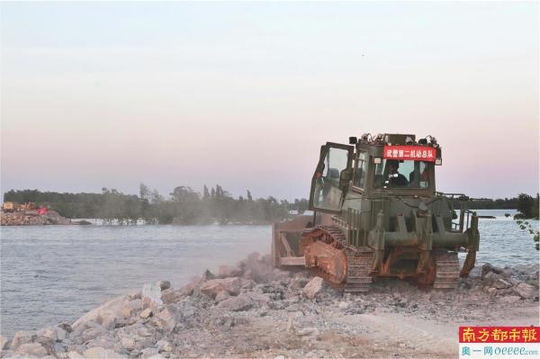 抢险车连夜倒石头两岸同时封堵