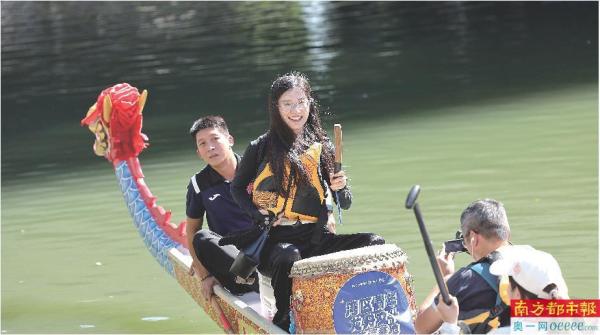 朱立芳说,这是“旱鸭子”的首次体验,“我是个北方人,河南人,小时候就在课本和电视上看过龙舟。现场来体验还是第一次。在电视上、视频上看,觉得好像很简单,实地体验就不一样了。今天我负责在船上打鼓,要做到落桨整齐划一,真的很难很难。不过,真的好开心,还有奖品呢!”